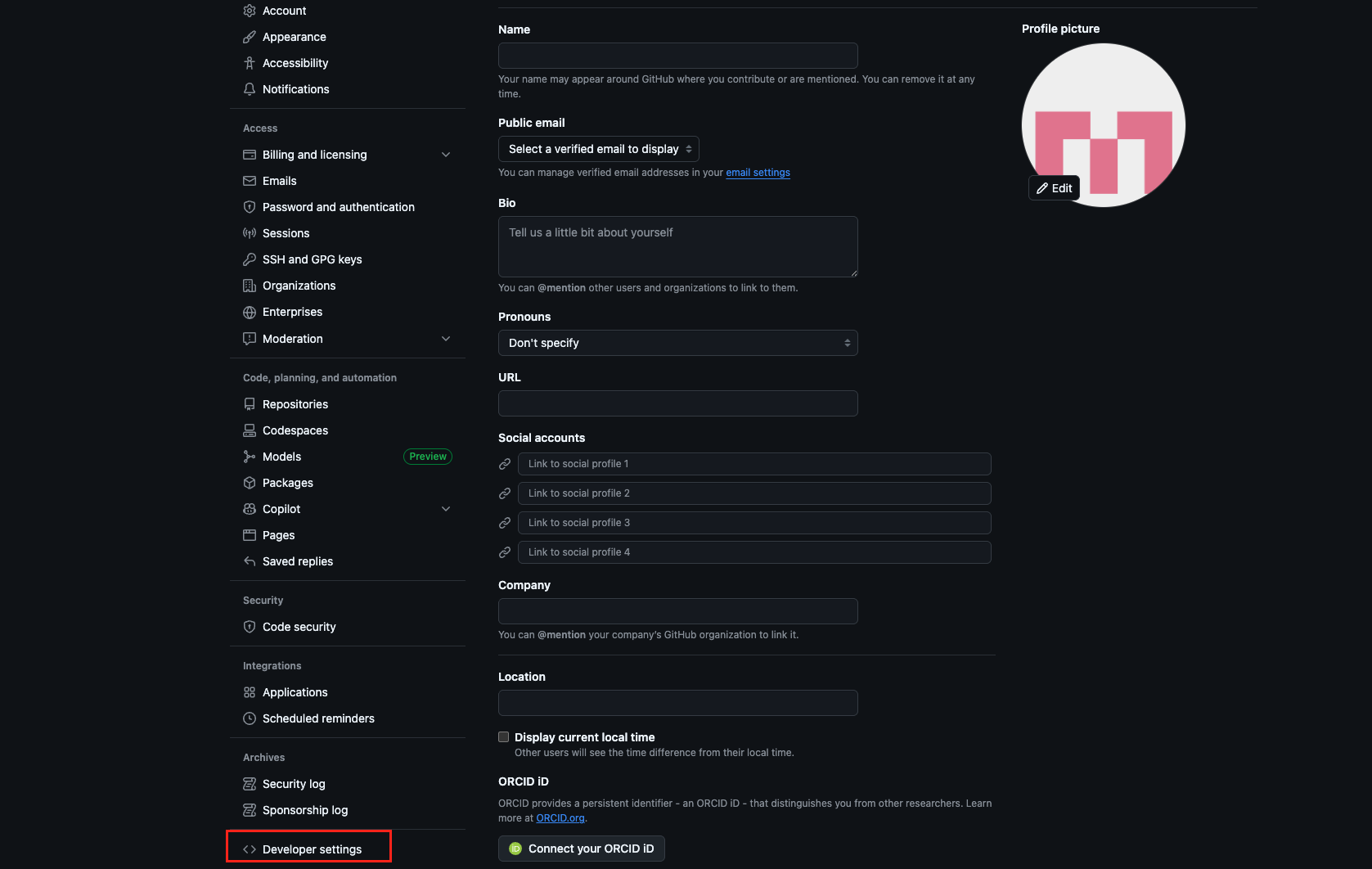 Step 3: Scroll down to the bottom of the left sidebar and select “Developer settings.”