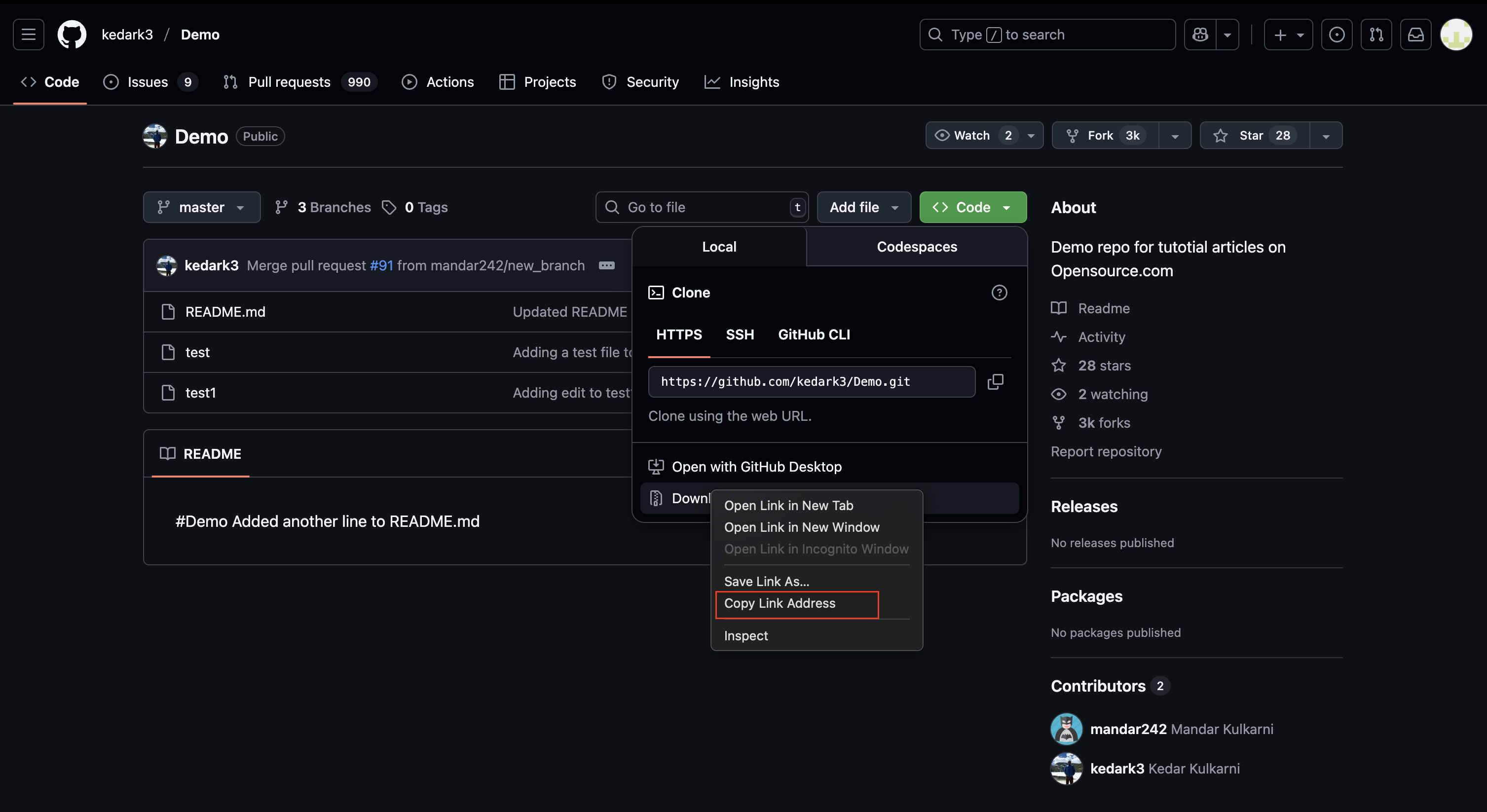 Then right-click on the option "Download Zip" and select "copy link address" option.